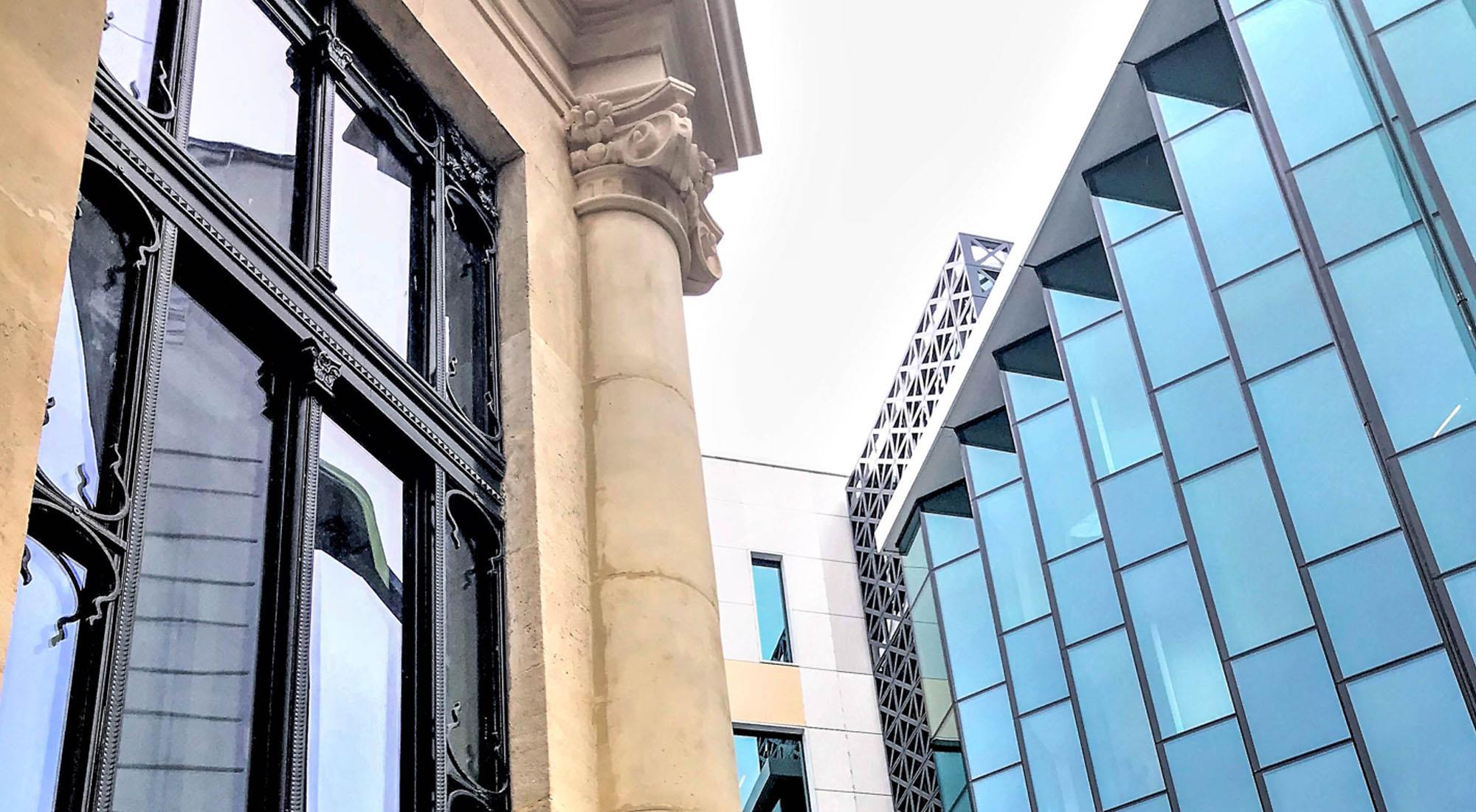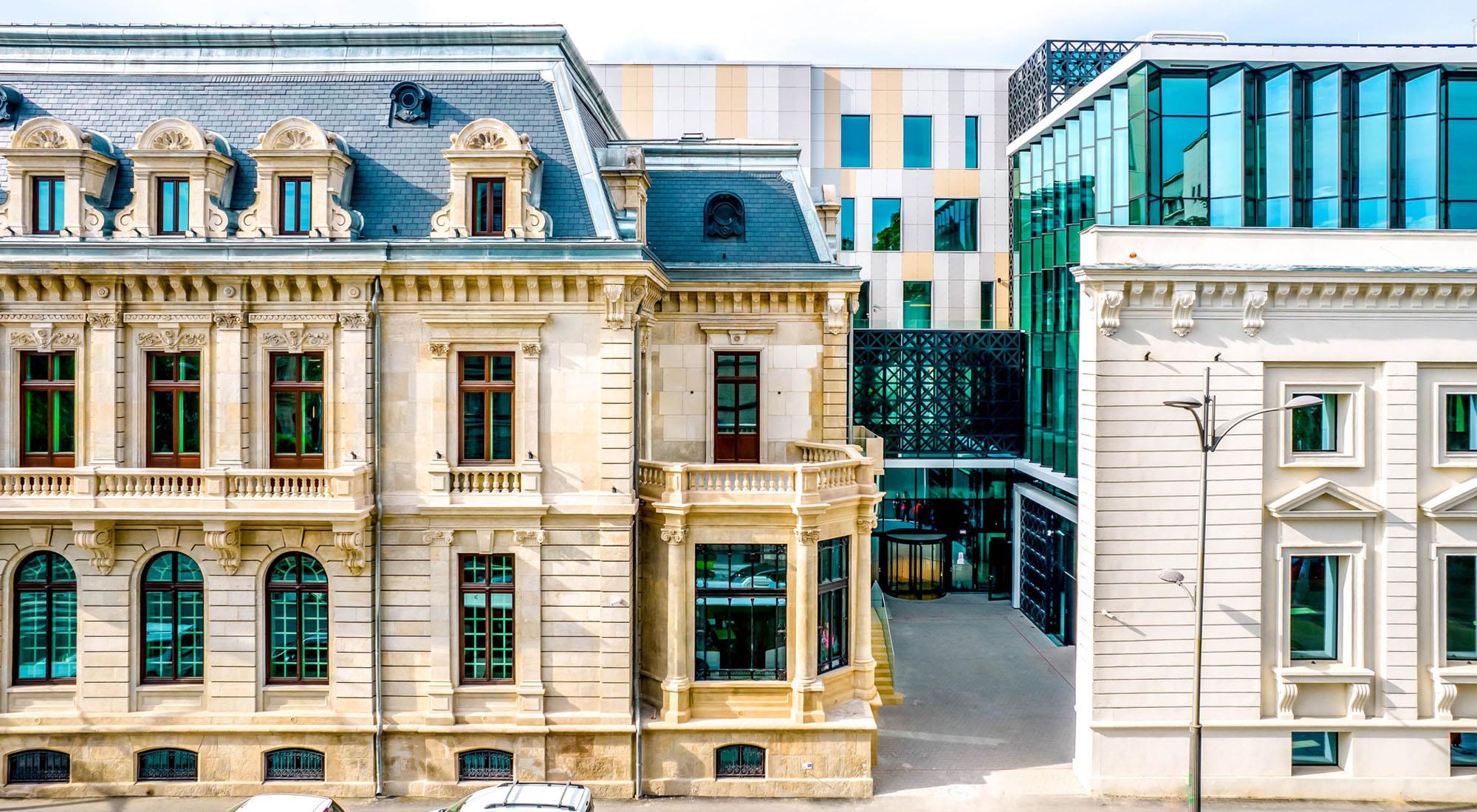 Dacia One, un proiect remarcabil și remarcat în centrul Bucureștiului este un exemplu de succes care a reușit restraurarea unui monument istoric și completarea lui cu o clădire modernă, integrând perfect această compoziție arhitecturală în țesutul urban al unei zone protejate. Din punct de vedere al soluțiilor folosite pentru anvelopa clădirii sau comparimentări interioare s-au ales sisteme din aluminiu pentru perete cortină structural precum și sisteme din profile de oțel, care au ajutat la recrearea imaginii originale a interioarelor.